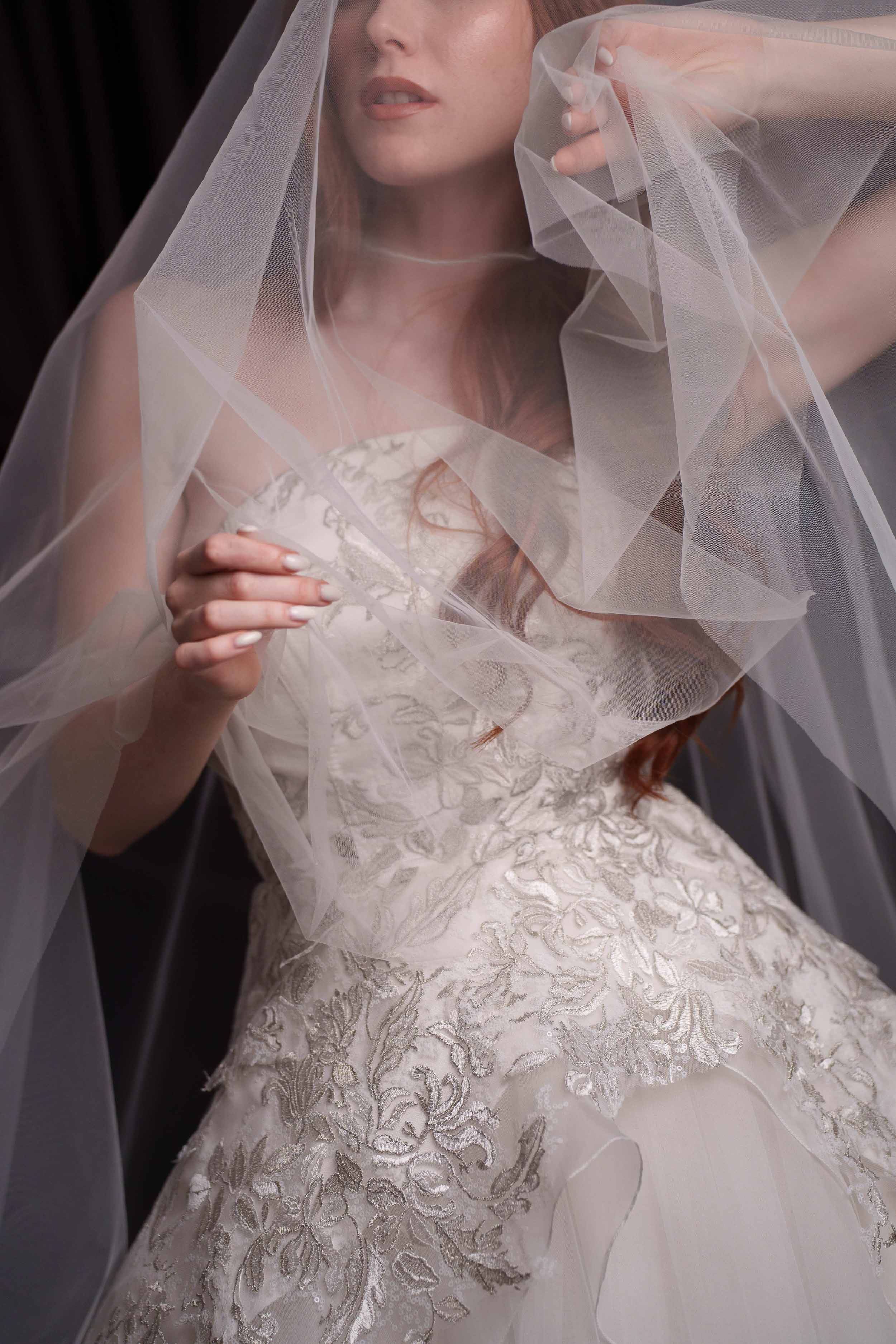 • Основа: сребърна бродерия, копринена тафта, естествена органза