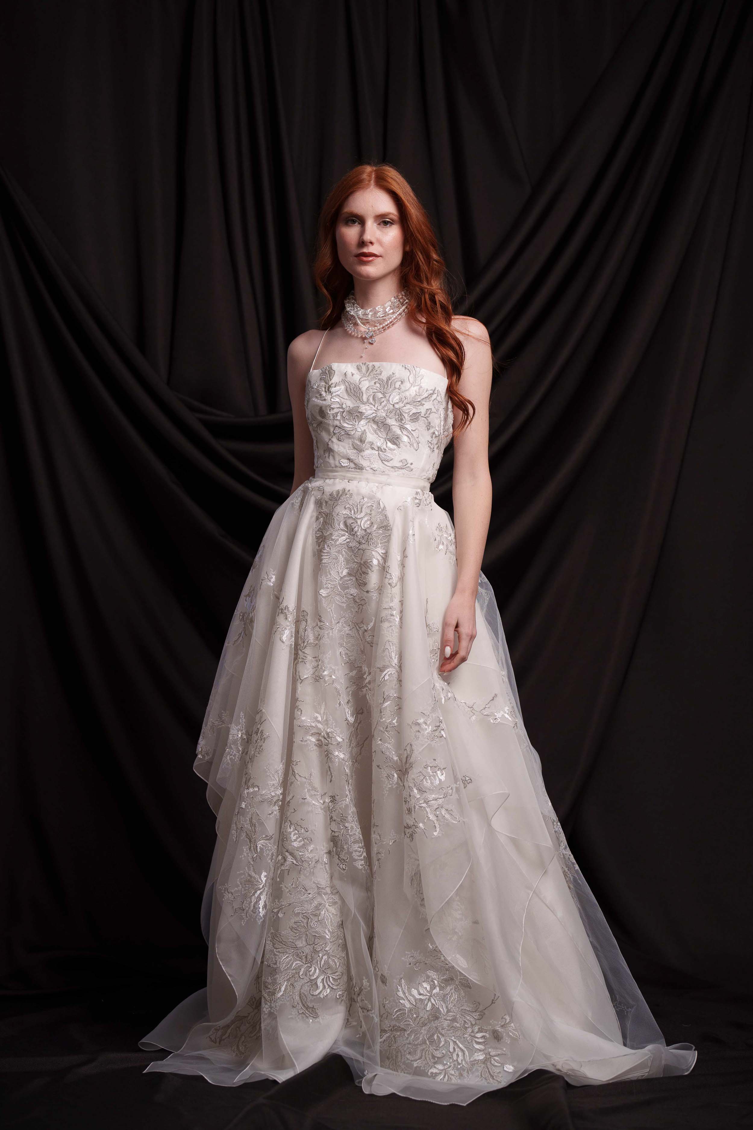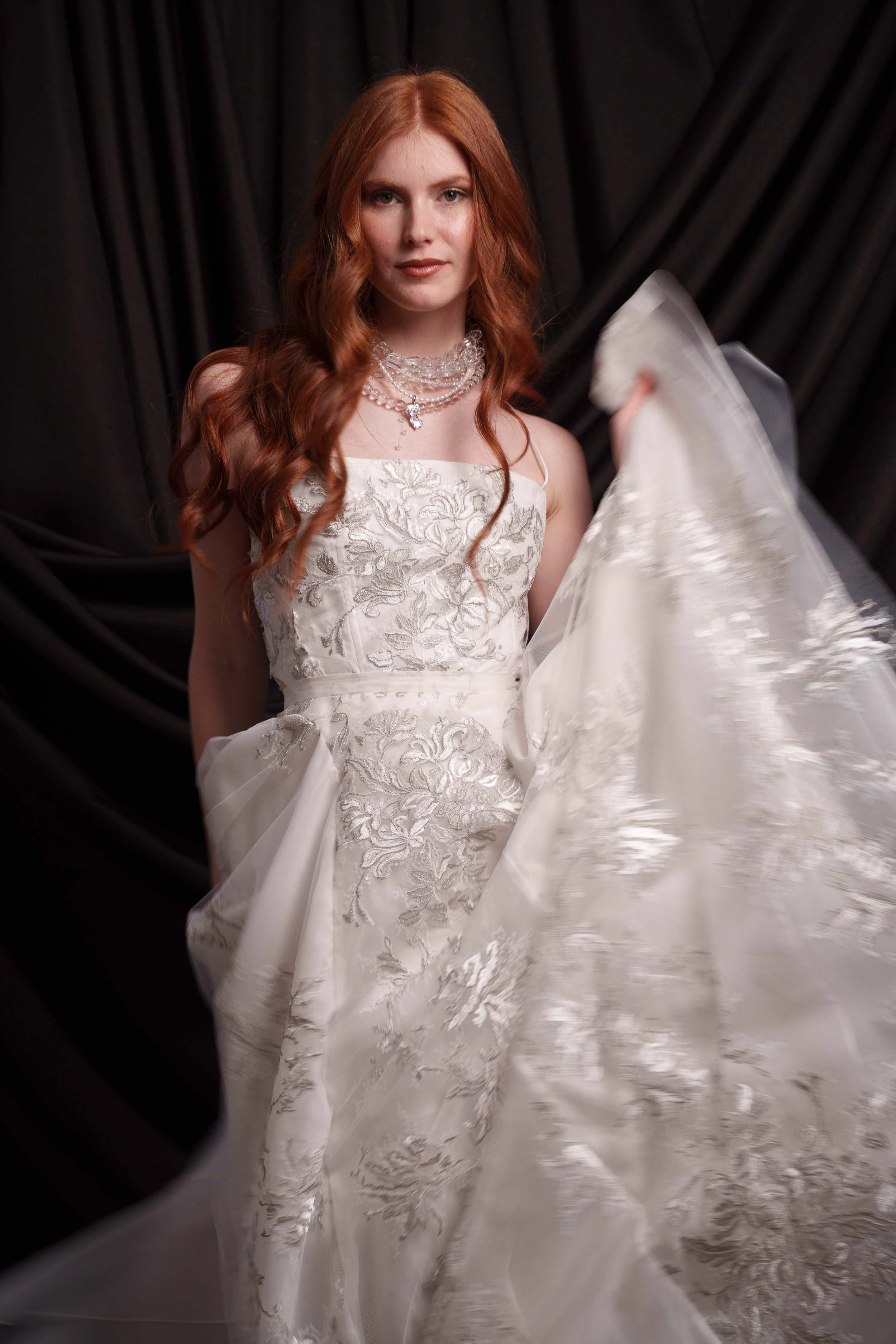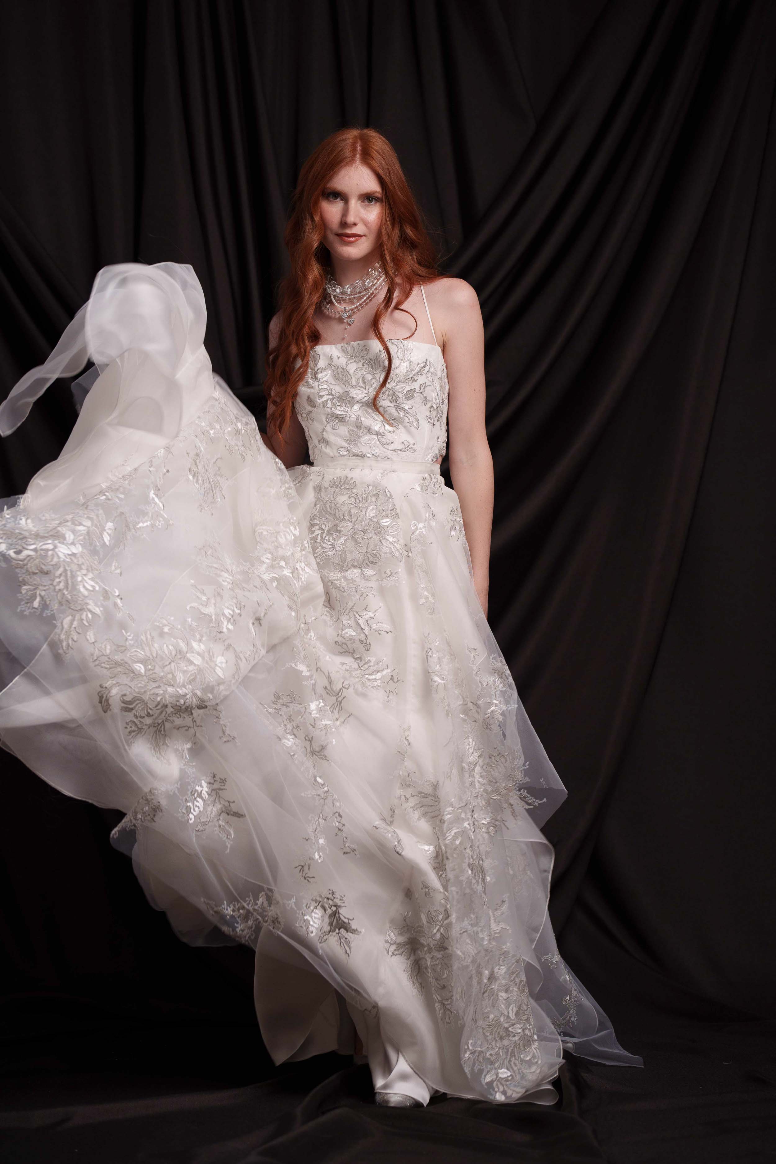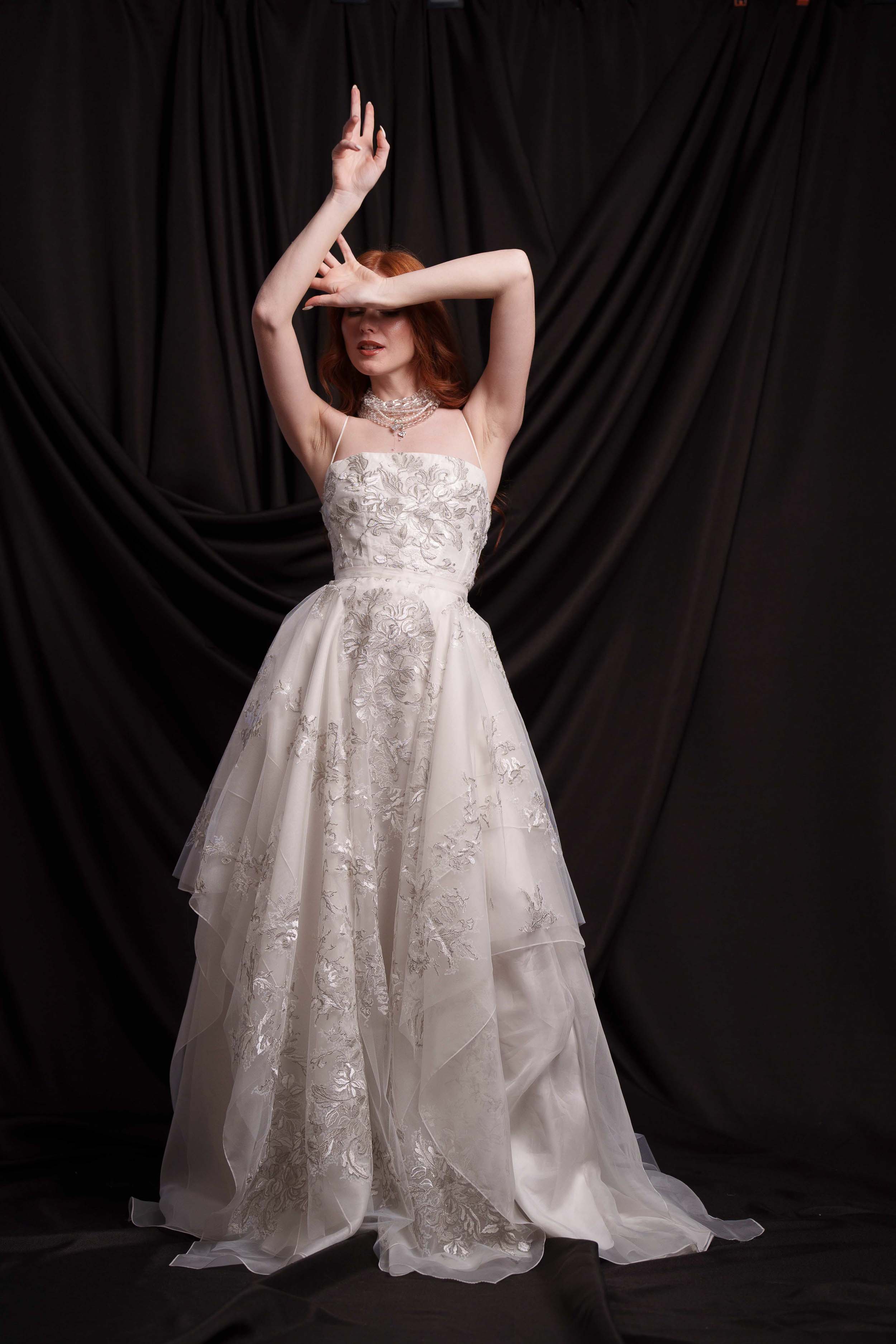 • Основа: сребърна бродерия, естествена копринена органза