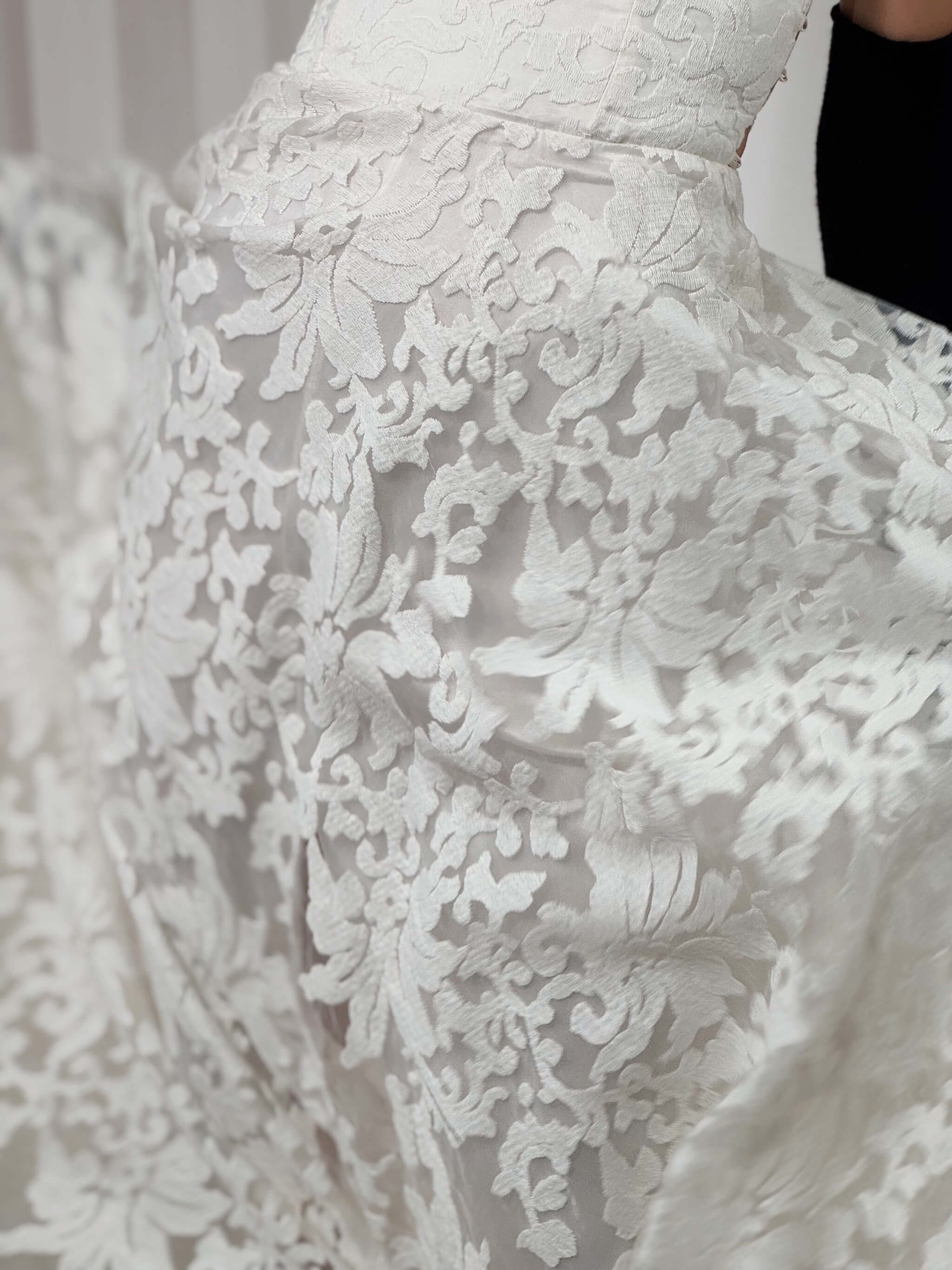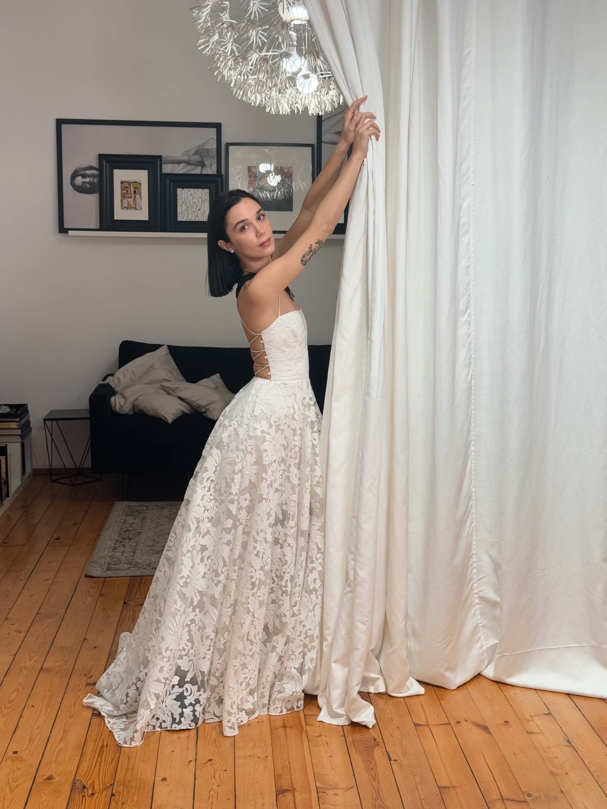 Upon order, custom alterations will be made to achieve your ideal fit. Please note that each gown has an existing size base, and adjustments can only be made within its natural proportions. We recommend choosing a gown that is close to your current size to ensure the best result.