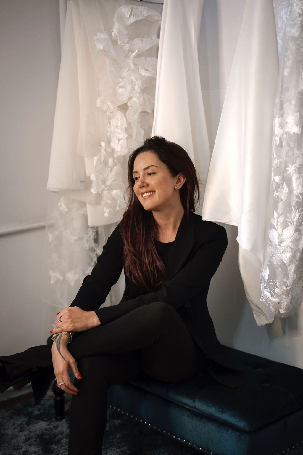 Sara Hirsh is a romantic with a punk heart. She started in film, where she learned how to tell stories — and then she turned that eye toward fashion. Raised across cultures and continents, Sarah brings a global, cinematic perspective to bridalwear. She’s influenced by Eastern European history, Western European aesthetics, and the emotional complexity of the Middle East. Her personal style blends softness and edge — think silk, raw seams, bare skin, black eyeliner. She launched the brand in 2015 with a desire to create clothing that feels personal, honest, and unlike anything else. Every design is a dialogue between feeling and form. Sara believes that what a bride wears should feel like a second skin — never a costume. She works closely with every client to make sure what they wear reflects not just their taste, but their story.
